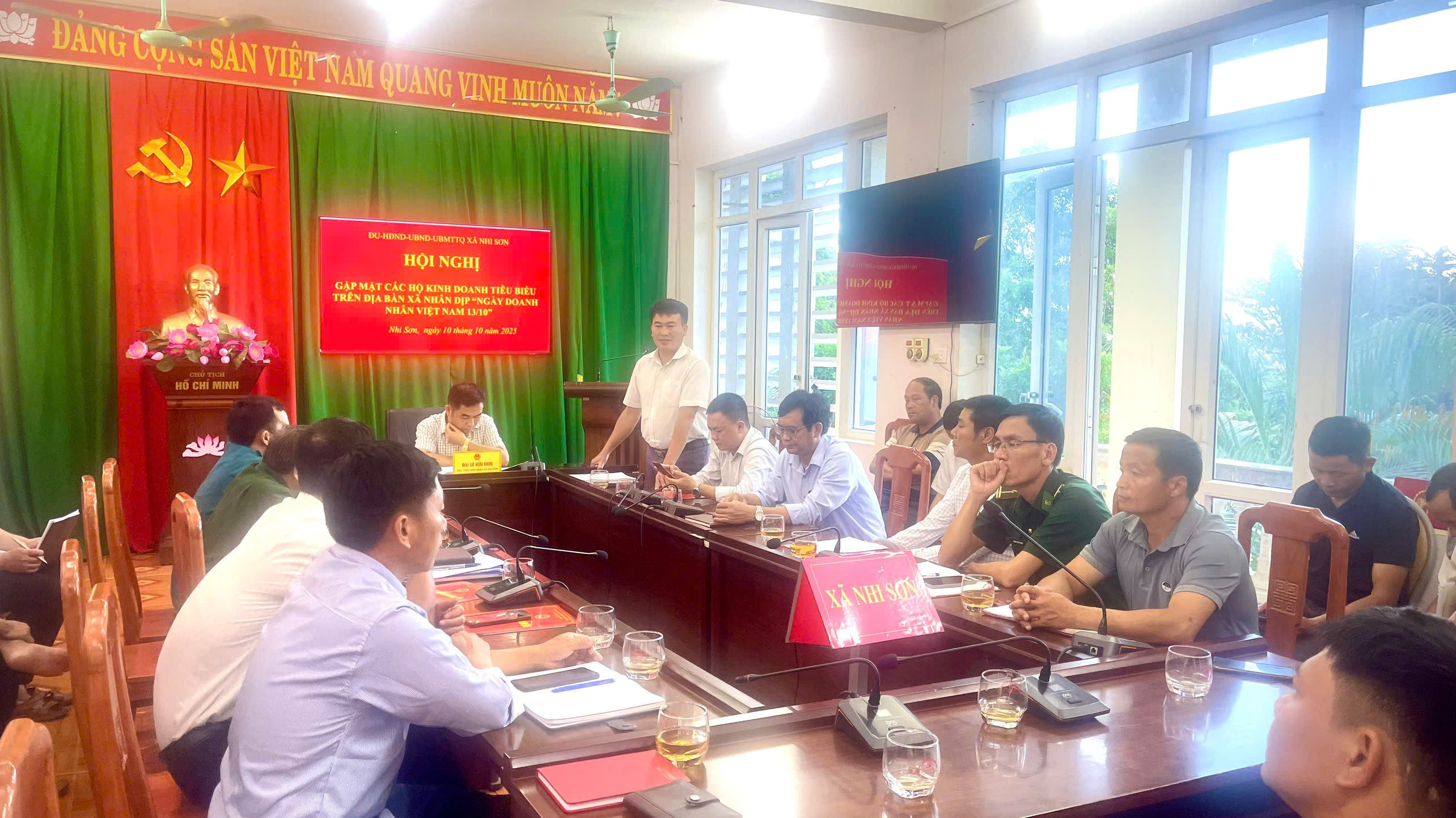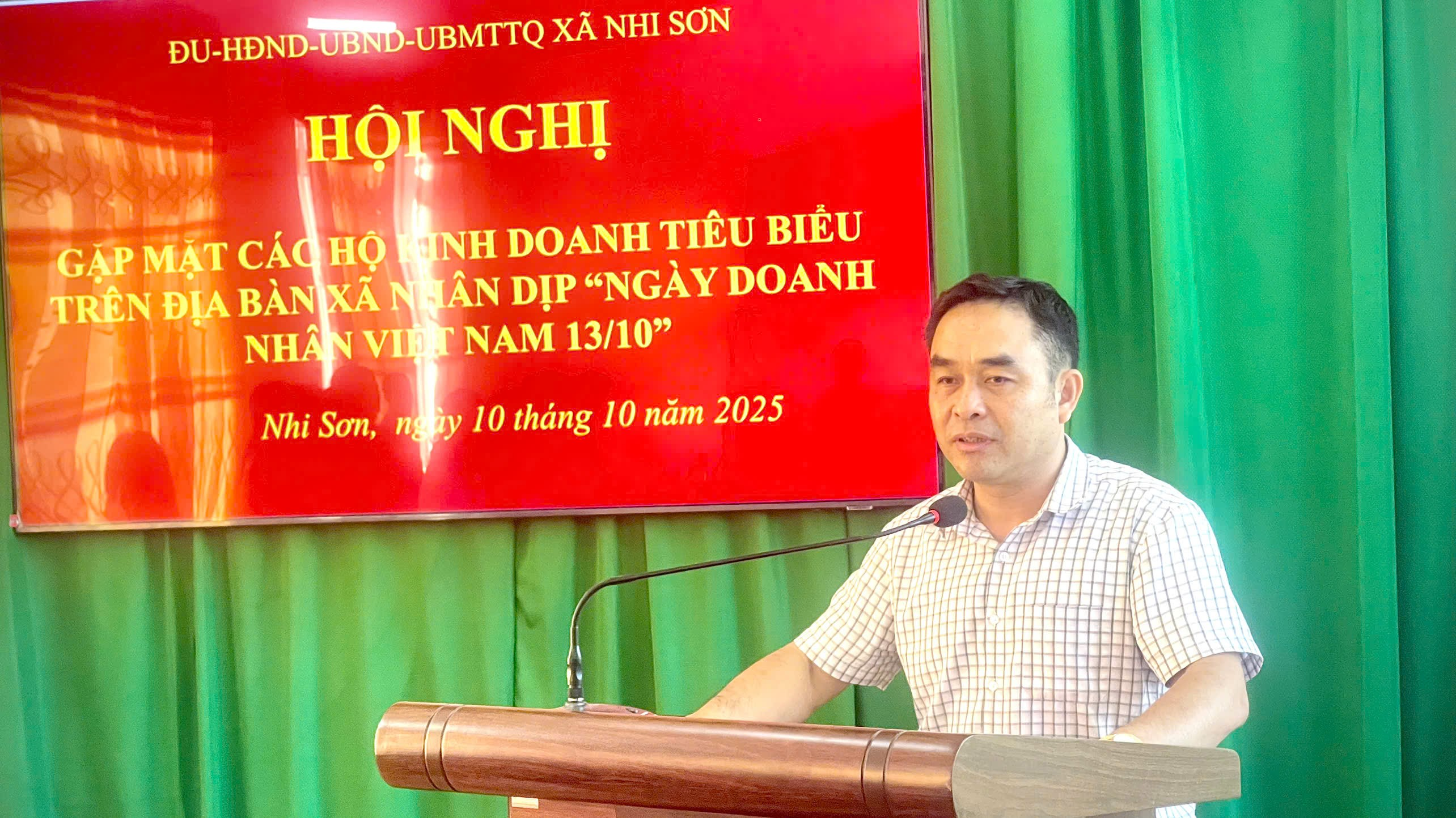 Hướng tới kỷ niệm 21 năm Ngày Doanh nhân Việt Nam (13/10), chiều ngày 10/10/2025, xã Nhi Sơn đã tổ chức Hội nghị gặp mặt các hộ kinh doanh tiêu biểu trên địa xã. Đồng chí Lê Hữu Nghị, Phó Bí thư Đảng ủy, Chủ tịch UBND xã dự và chủ trì Hội nghị. Tham dự hội nghị còn có các đồng chí trong Ban Thường vụ Đảng uỷ, Thường trực HĐND, UBND, UB MTTQ; các đồng chí đại diện các cơ quan, ban, ngành, đoàn thể xã; Hiệu trưởng các trường học, Trạm Y tế; lãnh đạo đội thuế số 11, Trạm biên phòng Pù Nhi; VNPT Mường Lát; Trưởng bản, cùng đại diện 17 hộ kinh doanh tiêu biểu trên địa bàn xã.