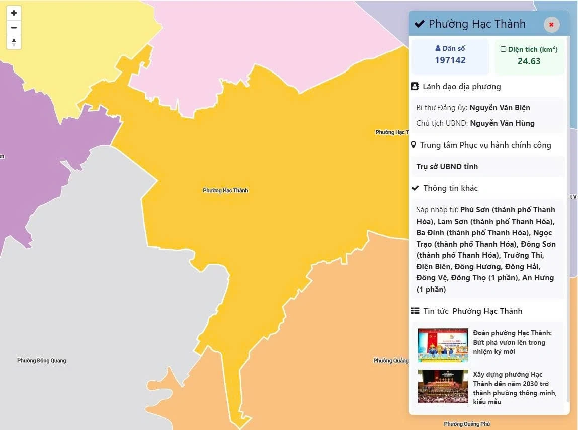 Trang dữ liệu số, tích hợp bản đồ 166 xã, phường được xây dựng dựa trên công nghệ bản đồ GIS hiện đại, có tính năng báo chí dữ liệu, phản ánh thông tin toàn diện của 166 xã, phường tỉnh Thanh Hóa sau khi sắp xếp đơn vị hành chính.