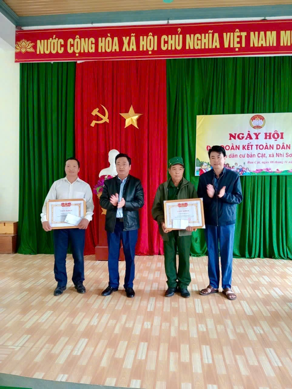 Hòa chung trong không khí cả nước hướng về kỷ niệm 95 năm Ngày truyền thống Mặt trận Tổ quốc Việt Nam (18/11/1930 - 18/11/2025), ngày 8/11, tại bản Cặt, xã Nhi Sơn đã long trọng tổ chức Ngày hội Đại đoàn kết toàn dân tộc. Dự và chung vui với bà con bản Cặt có đồng chí Lâu Dị Lênh – Bí thư Đảng ủy, Chủ tịch HĐND xã; cùng các đồng chí đại diện HĐND, UBND, Ủy ban MTTQ Việt Nam xã, trưởng các bản lân cận và đông đảo bà con nhân dân bản Cặt.