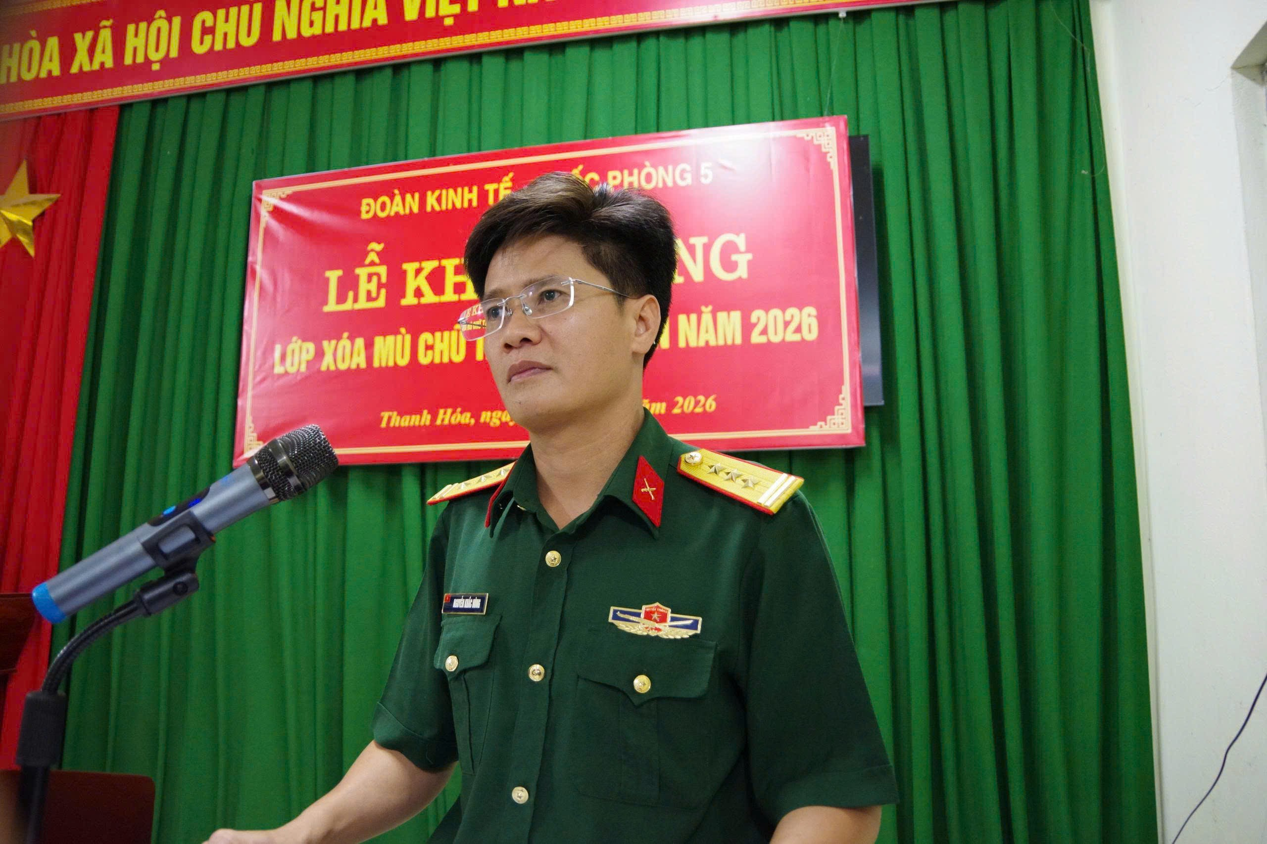 Phát biểu tại buổi lễ khai giảng, đồng chí Thượng tá Nguyễn Khắc Hùng, Phó Chính ủy Đoàn Kinh tế - Quốc phòng 5 khẳng định: công tác xóa mù chữ có ý nghĩa đặc biệt quan trọng trong việc nâng cao dân trí, góp phần giữ vững quốc phòng - an ninh và phát triển kinh tế - xã hội tại địa phương. Đồng chí nhấn mạnh, Đoàn Kinh tế - Quốc phòng 5 sẽ tiếp tục phối hợp chặt chẽ với cấp ủy, chính quyền xã Nhi Sơn để duy trì và nhân rộng các lớp học, đồng thời tạo điều kiện tốt nhất về cơ sở vật chất, đội ngũ hỗ trợ giảng dạy để lớp học đạt hiệu quả cao. Đồng chí cũng mong muốn bà con nhân dân phát huy tinh thần hiếu học, tích cực tham gia lớp học, coi việc học chữ là nền tảng để phát triển lâu dài.