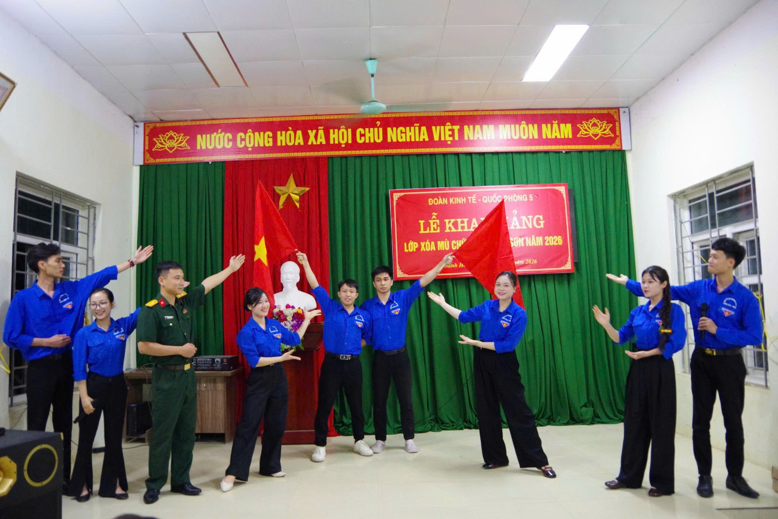 Nhằm nâng cao dân trí, góp phần phát triển kinh tế - xã hội và cải thiện đời sống cho nhân dân vùng đồng bào dân tộc thiểu số, tối ngày 22/4/2026, Trung tâm học tập cộng đồng xã Nhi Sơn đã phối hợp với Đoàn Kinh tế - Quốc phòng 5 tổ chức khai giảng lớp xóa mù chữ tại bản Pá Hộc.